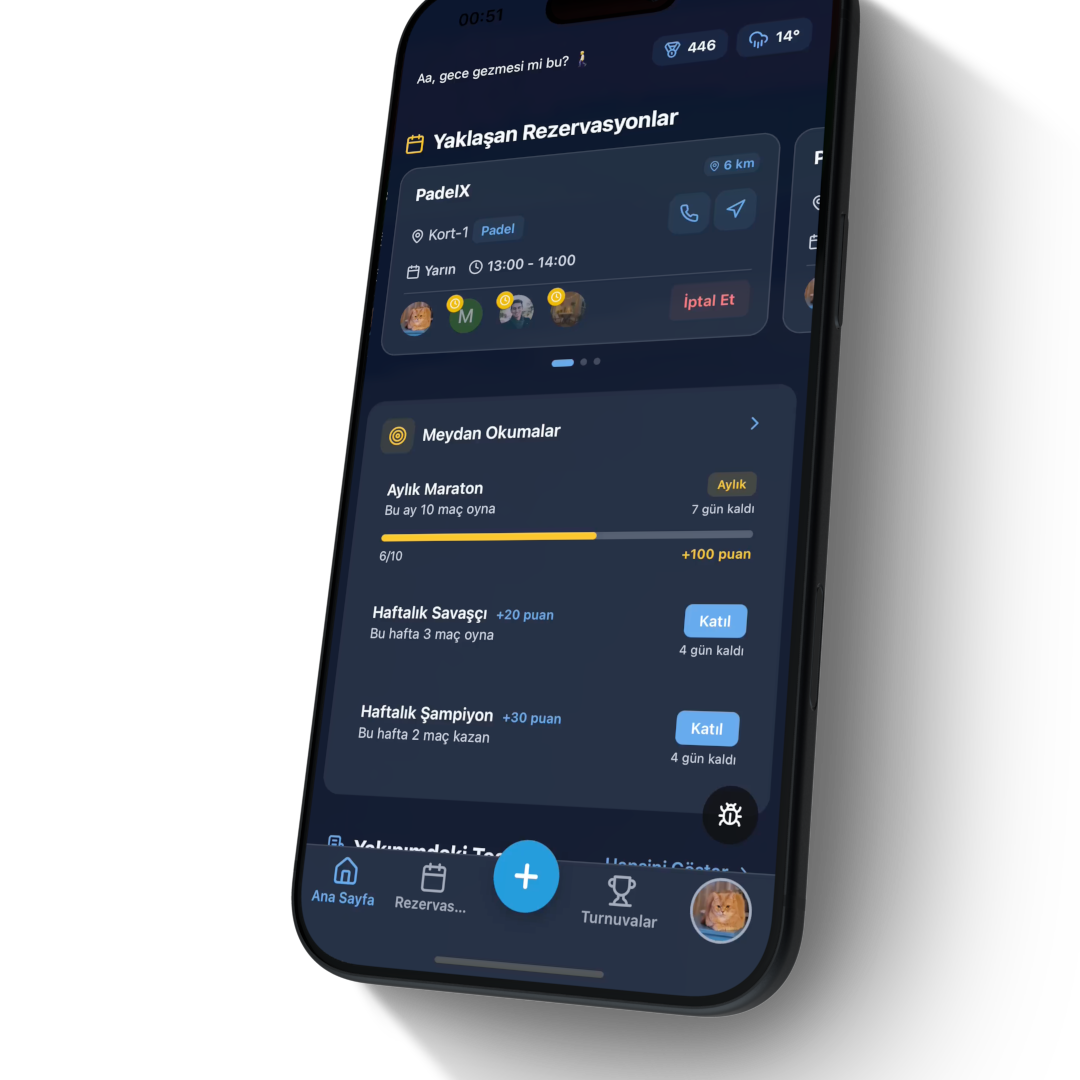 With Meet&Play, you can easily schedule times at the best sports spaces. Track your activities, organize matches, and connect with other players, making every game a memorable experience of competition and friendship.